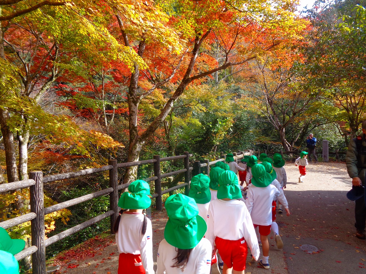 ぽかぽかの良いお天気の中、箕面の滝道へもみじ狩りに出かけました。 満3歳児……