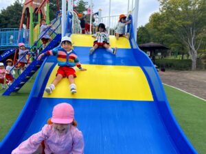 栗拾いの後は、一庫公園へ移動して、お弁当を食べたり、遊具で思いっきり身体を動かして遊んだり楽しみました。