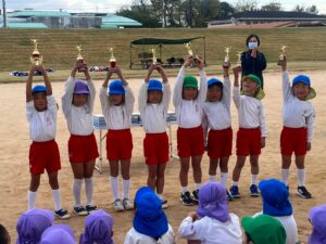 全員もらった金メダルを首に、達成感いっぱいで誇らしげでした。