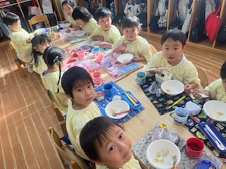貴重な体験にわくわくドキドキ‼つきたてのお餅を自分たちで丸め、お腹いっぱい食べました。