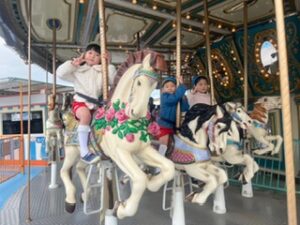 乗り物に乗って大歓声をあげました。